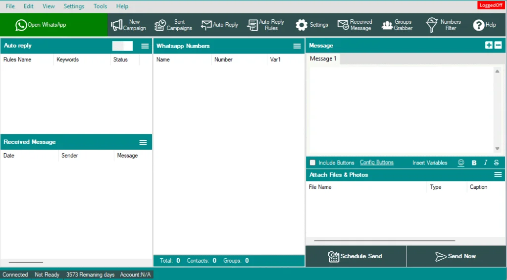 Disclaimer: WA Blaster is not affiliated with WhatsApp, Facebook, or any third-party partners in any way. It is your sole responsibility to comply with WhatsApp rules and any legislation that you are subject to. You use our software at your own risk. We believed responsibility is yours alone and we are not responsible for any of your actions and their consequences. We are not to blame in the unlikely case of your accounts getting banned for any reason. There is no guarantee of continuous, uninterrupted or error-free operability of the software